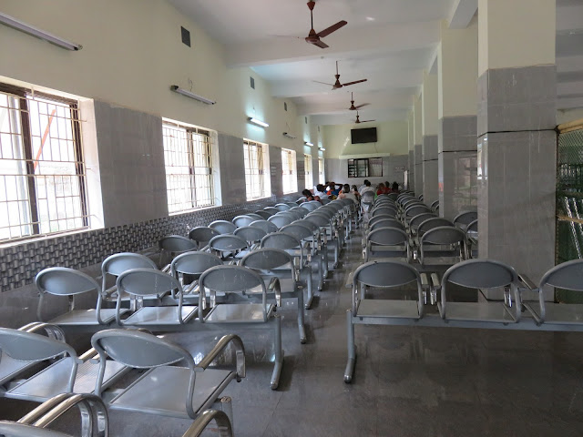 நல்ல வசதியான பெரிய கூடம். பந்தி ஆரம்பிக்குமுன் காத்திருக்க ஒரு இடம், சாப்பிடும் கூடமுன்னு ரெண்டு பகுதிகளா நல்லாவே இருக்கு! பகல் பத்து மணியில் இருந்து பந்தி ஆரம்பிக்குமாம். ஒரே சமயத்தில் 250 பேர் சாப்பிடலாம், இன்னொரு 250 பேர் அடுத்த பந்திக்குக் காத்திருக்கும் வசதின்னு அருமையாக் கட்டி இருக்காங்க. காத்திருப்போருக்குப் பொழுது போகணுமேன்னு டிவி வச்சுருக்காங்க அந்த வெயிட்டிங் ஹாலில்! சாமி சமாச்சாரமான படங்கள் கோவில் விஷயங்கள் இப்படி அதுலே ஓடும். எதானா என்ன.... நம்ம மக்களுக்கு டிவின்னு ஒன்னு இருந்தால் போதாதா என்ன? நானும் பல இடங்களில் பார்த்துருக்கேன்.... ஆள் இருக்கோ இல்லையோ டிவி மட்டும் ஓடிக்கிட்டே இருக்கும் ! சில வீடுகளிலும் இப்படித்தான்.... :-(